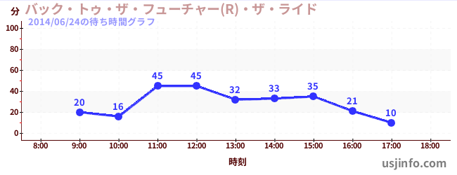 • バック・トゥ・ザ・フューチャー(R)・ザ・ライド$B$N(B2014年06月24日の待ち時間