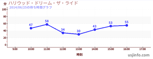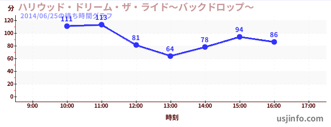 • ハリウッド・ドリーム・ザ・ライド〜バックドロップ〜$B$N(B2014年06月25日の待ち時間