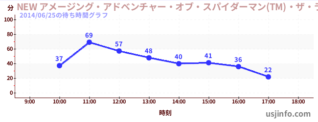 • NEW アメージング・アドベンチャー・オブ・スパイダーマン(TM)・ザ・ライド 4K3D$B$N(B2014年06月25日の待ち時間