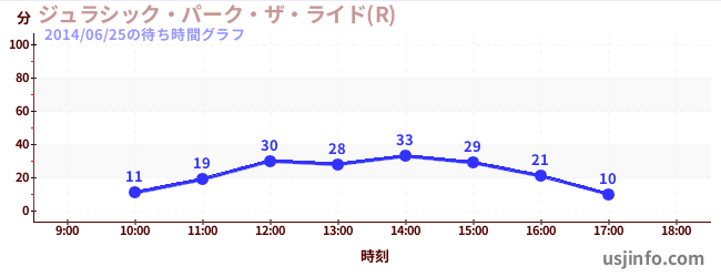 • ジュラシック・パーク・ザ・ライド(R)$B$N(B2014年06月25日の待ち時間