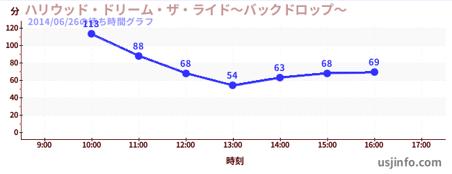 • ハリウッド・ドリーム・ザ・ライド〜バックドロップ〜$B$N(B2014年06月26日の待ち時間