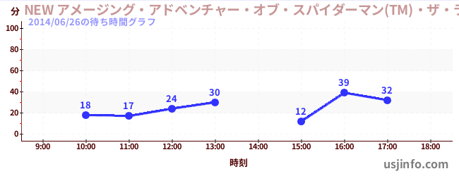 • NEW アメージング・アドベンチャー・オブ・スパイダーマン(TM)・ザ・ライド 4K3D$B$N(B2014年06月26日の待ち時間