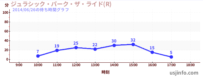 • ジュラシック・パーク・ザ・ライド(R)$B$N(B2014年06月26日の待ち時間