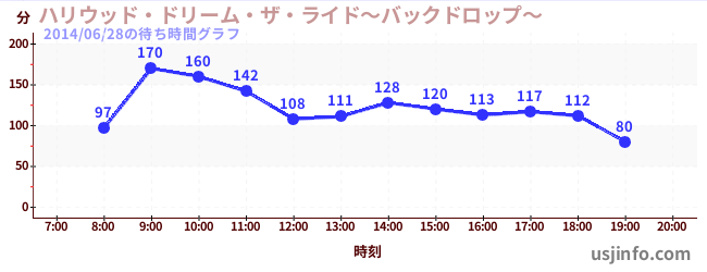 • ハリウッド・ドリーム・ザ・ライド〜バックドロップ〜$B$N(B2014年06月28日の待ち時間