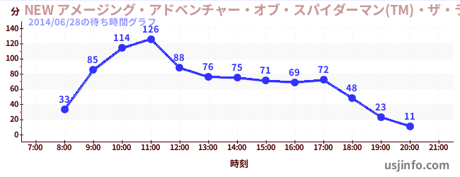• NEW アメージング・アドベンチャー・オブ・スパイダーマン(TM)・ザ・ライド 4K3D$B$N(B2014年06月28日の待ち時間