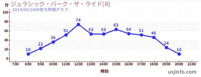 • ジュラシック・パーク・ザ・ライド(R)$B$N(B2014年06月28日の待ち時間