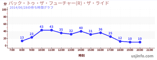 • バック・トゥ・ザ・フューチャー(R)・ザ・ライド$B$N(B2014年06月28日の待ち時間