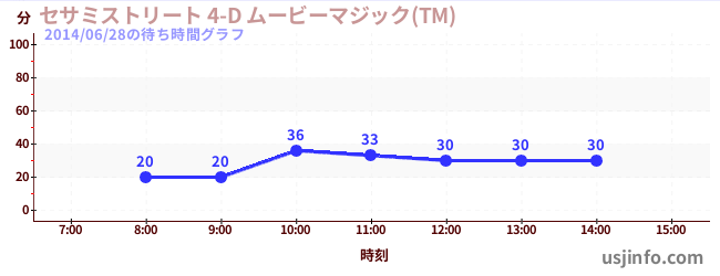 • セサミストリート 4-D ムービーマジック(TM)$B$N(B2014年06月28日の待ち時間