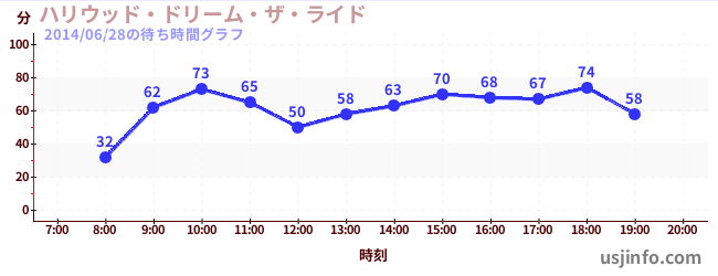 • ハリウッド・ドリーム・ザ・ライド$B$N(B2014年06月28日の待ち時間