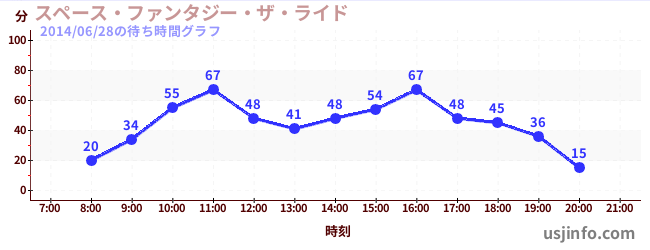 • スペース・ファンタジー・ザ・ライド$B$N(B2014年06月28日の待ち時間
