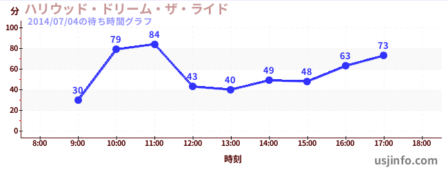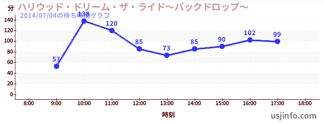 • ハリウッド・ドリーム・ザ・ライド〜バックドロップ〜$B$N(B2014年07月04日の待ち時間