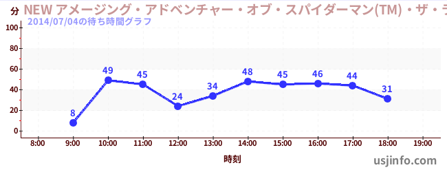 • NEW アメージング・アドベンチャー・オブ・スパイダーマン(TM)・ザ・ライド 4K3D$B$N(B2014年07月04日の待ち時間