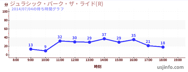 • ジュラシック・パーク・ザ・ライド(R)$B$N(B2014年07月04日の待ち時間