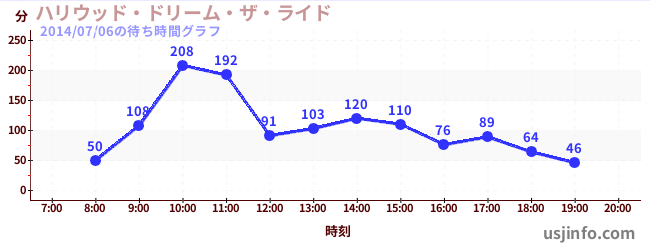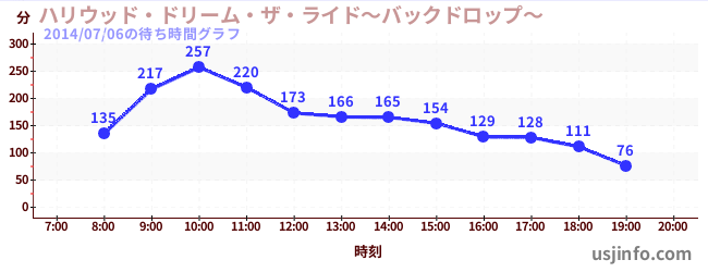 • ハリウッド・ドリーム・ザ・ライド〜バックドロップ〜$B$N(B2014年07月06日の待ち時間