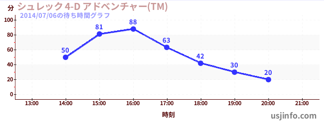 • シュレック 4-D アドベンチャー(TM)$B$N(B2014年07月06日の待ち時間