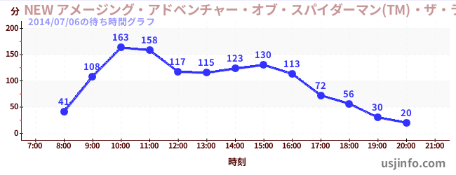 • NEW アメージング・アドベンチャー・オブ・スパイダーマン(TM)・ザ・ライド 4K3D$B$N(B2014年07月06日の待ち時間