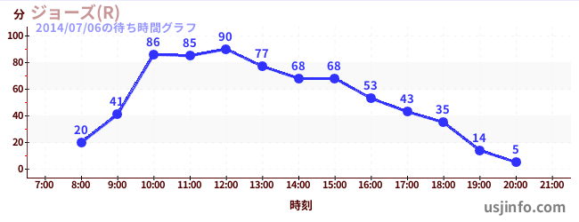 • ジョーズ(R)$B$N(B2014年07月06日の待ち時間