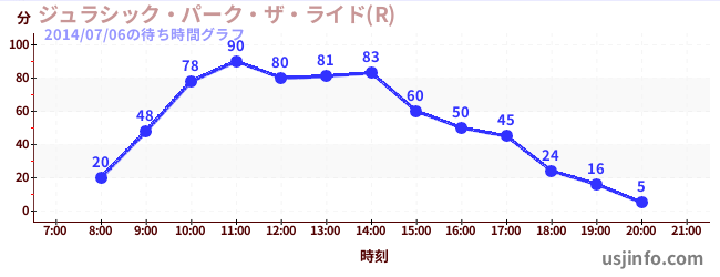 • ジュラシック・パーク・ザ・ライド(R)$B$N(B2014年07月06日の待ち時間