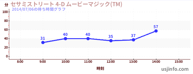 • セサミストリート 4-D ムービーマジック(TM)$B$N(B2014年07月06日の待ち時間