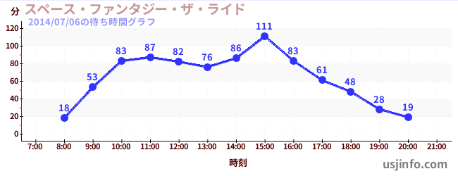 • スペース・ファンタジー・ザ・ライド$B$N(B2014年07月06日の待ち時間