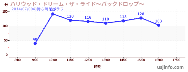• ハリウッド・ドリーム・ザ・ライド〜バックドロップ〜$B$N(B2014年07月09日の待ち時間