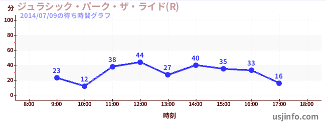 • ジュラシック・パーク・ザ・ライド(R)$B$N(B2014年07月09日の待ち時間