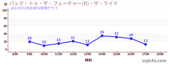 • バック・トゥ・ザ・フューチャー(R)・ザ・ライド$B$N(B2014年07月09日の待ち時間