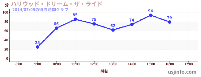 • ハリウッド・ドリーム・ザ・ライド$B$N(B2014年07月09日の待ち時間