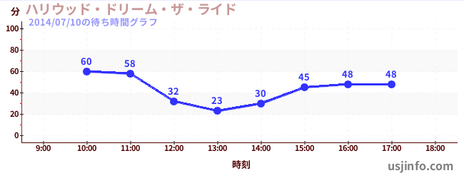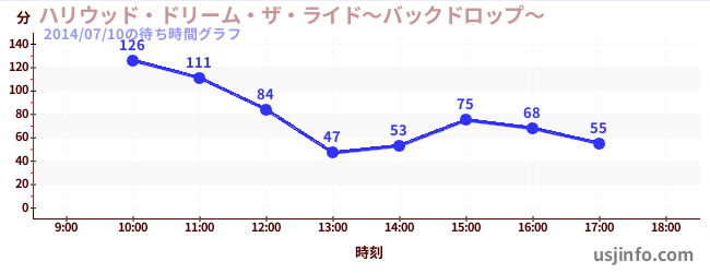 • ハリウッド・ドリーム・ザ・ライド〜バックドロップ〜$B$N(B2014年07月10日の待ち時間