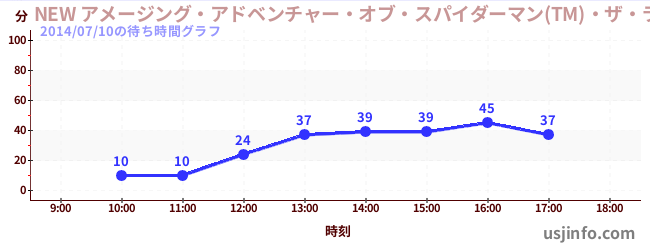 • NEW アメージング・アドベンチャー・オブ・スパイダーマン(TM)・ザ・ライド 4K3D$B$N(B2014年07月10日の待ち時間