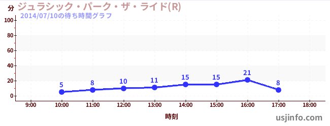 • ジュラシック・パーク・ザ・ライド(R)$B$N(B2014年07月10日の待ち時間
