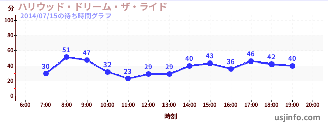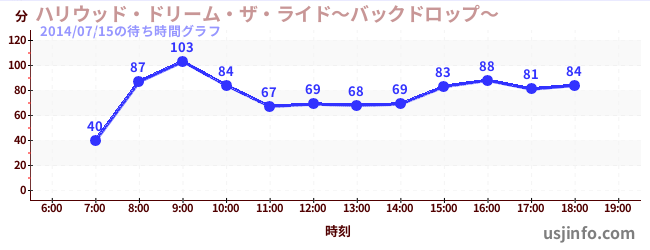 • ハリウッド・ドリーム・ザ・ライド〜バックドロップ〜$B$N(B2014年07月15日の待ち時間