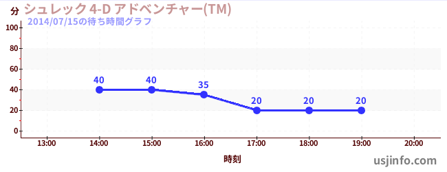 • シュレック 4-D アドベンチャー(TM)$B$N(B2014年07月15日の待ち時間