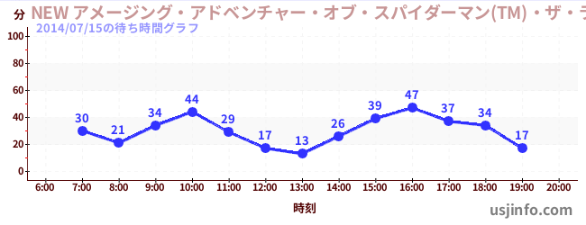 • NEW アメージング・アドベンチャー・オブ・スパイダーマン(TM)・ザ・ライド 4K3D$B$N(B2014年07月15日の待ち時間
