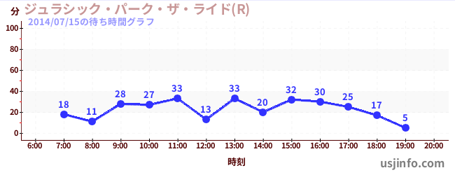 • ジュラシック・パーク・ザ・ライド(R)$B$N(B2014年07月15日の待ち時間
