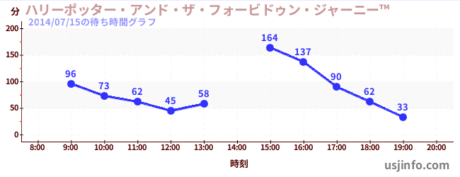 • ハリーポッター・アンド・ザ・フォービドゥン・ジャーニー™$B$N(B2014年07月15日の待ち時間