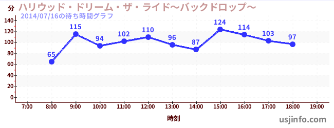 • ハリウッド・ドリーム・ザ・ライド〜バックドロップ〜$B$N(B2014年07月16日の待ち時間