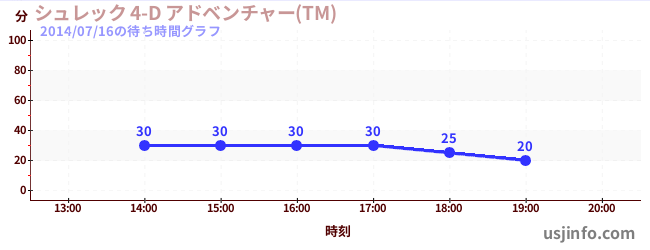 • シュレック 4-D アドベンチャー(TM)$B$N(B2014年07月16日の待ち時間