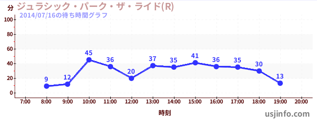 • ジュラシック・パーク・ザ・ライド(R)$B$N(B2014年07月16日の待ち時間