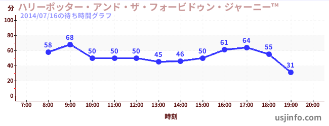 • ハリーポッター・アンド・ザ・フォービドゥン・ジャーニー™$B$N(B2014年07月16日の待ち時間