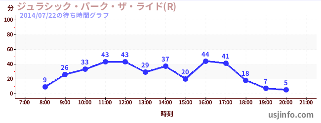 • ジュラシック・パーク・ザ・ライド(R)$B$N(B2014年07月22日の待ち時間