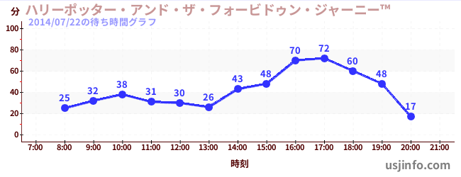 • ハリーポッター・アンド・ザ・フォービドゥン・ジャーニー™$B$N(B2014年07月22日の待ち時間