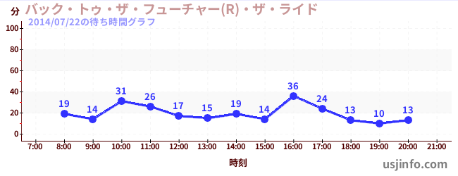 • バック・トゥ・ザ・フューチャー(R)・ザ・ライド$B$N(B2014年07月22日の待ち時間