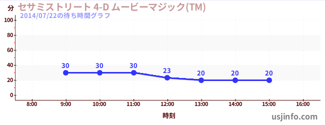 • セサミストリート 4-D ムービーマジック(TM)$B$N(B2014年07月22日の待ち時間