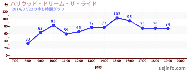 • ハリウッド・ドリーム・ザ・ライド〜バックドロップ〜$B$N(B2014年07月22日の待ち時間