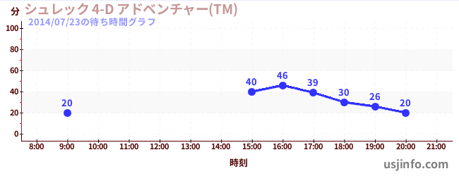 • シュレック 4-D アドベンチャー(TM)$B$N(B2014年07月23日の待ち時間