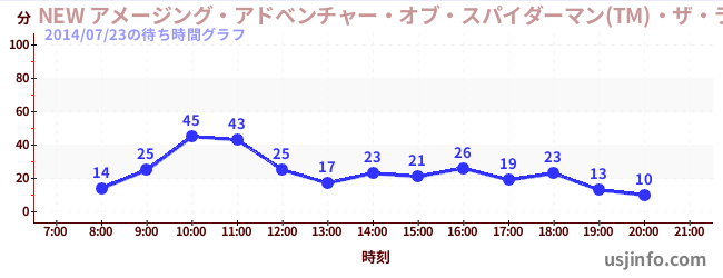 • NEW アメージング・アドベンチャー・オブ・スパイダーマン(TM)・ザ・ライド 4K3D$B$N(B2014年07月23日の待ち時間
