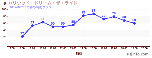• ハリウッド・ドリーム・ザ・ライド〜バックドロップ〜$B$N(B2014年07月23日の待ち時間