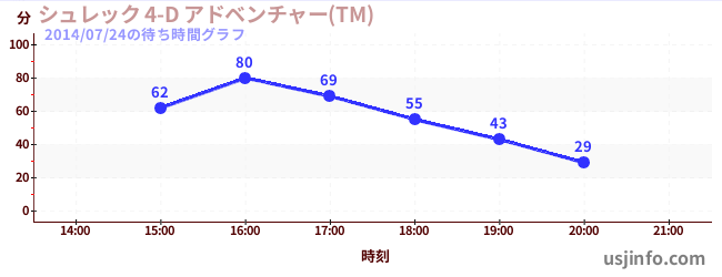 • シュレック 4-D アドベンチャー(TM)$B$N(B2014年07月24日の待ち時間