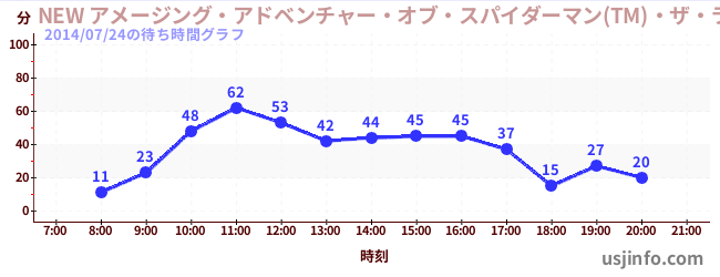 • NEW アメージング・アドベンチャー・オブ・スパイダーマン(TM)・ザ・ライド 4K3D$B$N(B2014年07月24日の待ち時間